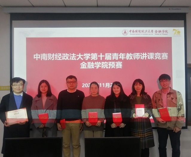 (通讯员 杨祯 李敏 邢国晶)为进一步加强青年教师教学能力培养,夯实青年教师教学基本功,促进课堂教学质量提升,切实提高人才培养质量,金融学院于2021112514:00在文泉南104组织开展第十届青年教师讲课竞赛。竞赛邀请到金融学院张东教授、陶雄华教授、董志华副教授、以及冀志斌、吴克坤、周艳丽、吴建军四位系主任和四名学生代表担任评委,由李建华副院长主持,来自金融系、金融工程系、保险系及投资系的七位青年教师各自通过20分钟的教学演示,展现了学院新一代青年教师的教学风采。