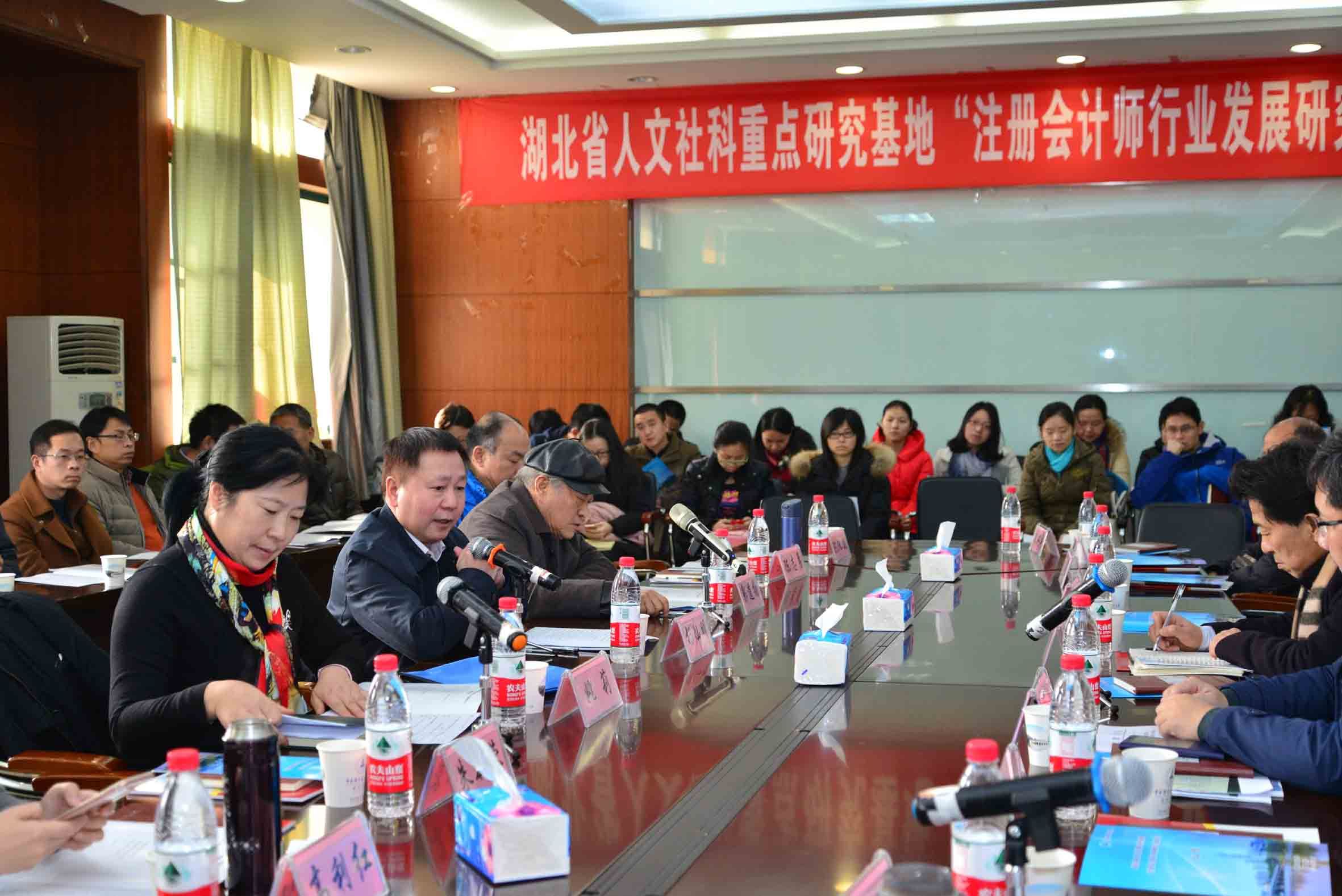 (通讯员 徐会超)2016年12月27日下午2:30,湖北省人文社科重点研究基地“注册会计师行业发展研究中心”(以下简称“基地”)揭牌仪式在文泉楼南401会议室隆重举行。米兰电竞·(中国区)校长杨灿明、副校长姚莉、文澜资深教授郭道扬、发展规划部部长高利红、组织部副部长傅小勇、社科院副院长汪峰、法治发展与司法改革研究中心主任徐汉明、WTO与湖北发展研究中心主任陈池波、湖北财政与发展研究中心主任陈志勇、社会主义核心价值观研究中心主任龚先庆、注册会计师行业发展研究中心主任张龙平、会计学院院长张敦力、副院长王雄元、副院长王华、会硕中心副主任郭飞、新宣布任命的副院长王昌锐及会计学院教师、访问学者与学生代表参加仪式,仪式由会计学院院长张敦力主持。