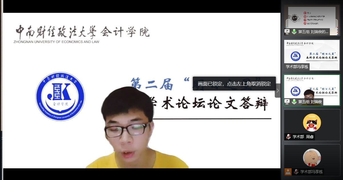 “论学术之志,求科研之明”。同学们通过“停课不停学,停课不停研”,在线下科研查阅文献,线上组队研讨,线上答辩,坚定了战胜疫情的信心和努力学习的决心,更加坚定地成为全民抗疫的“践行者”、“参与者”。本次学术论文论坛,师生齐聚线上,共同交流成为了疫情新形势下促进科研的好方式,提高了专业水平和科研素养,进一步展现我院一流本科生深入实践,不断探索的靓丽风采。同学们纷纷表示,疫情当头,作为当代大学生要有责任担当意识和家国情怀,要用奋斗的青春、创新的思维、科研的决心全面彰显中南大会计人的责任担当。
