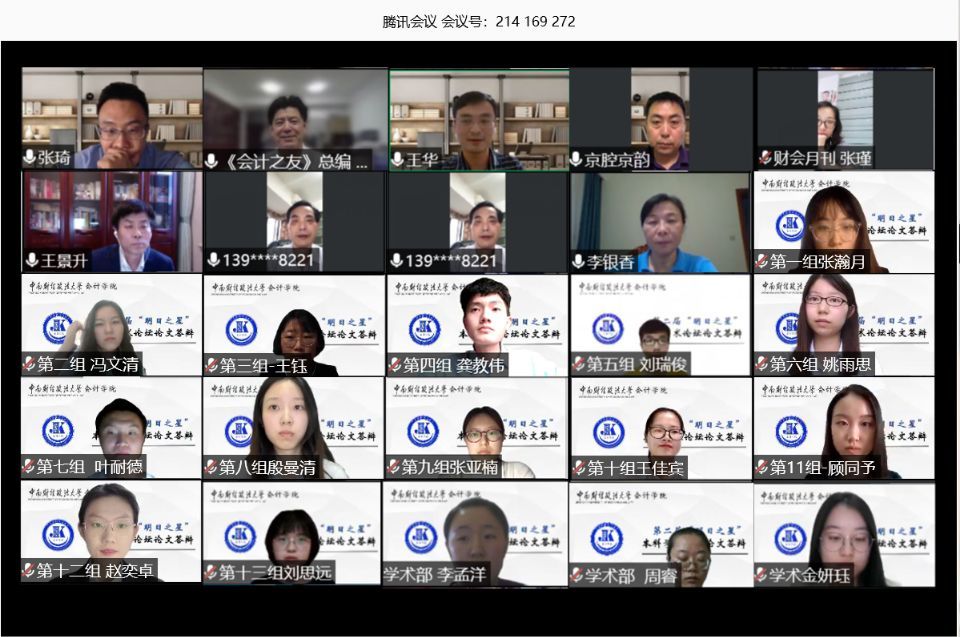 (撰稿人:王华,张昭妍,周睿)疫情给学生培养带来了前所未有的挑战。会计学院共克时艰,同心战“疫”,做到“停课不停学,停课不停研”,书写了师生的科研责任与创新担当。5月28日晚,会计学院第二届“明日之星”本科学术论坛采用视频会议方式举行,会计学院院长张敦力担任论坛组委会主席,王华副院长报告了本科生学术论坛自2019年11月启动以来的筹备情况和入选论文评审过程,学院加强科研育人、实践育人,创新培养一流本科人才,倾力搭建一流本科学生实践创新与学术交流的学术平台,进一步推动并落实一流本科人才培养的实践改革。