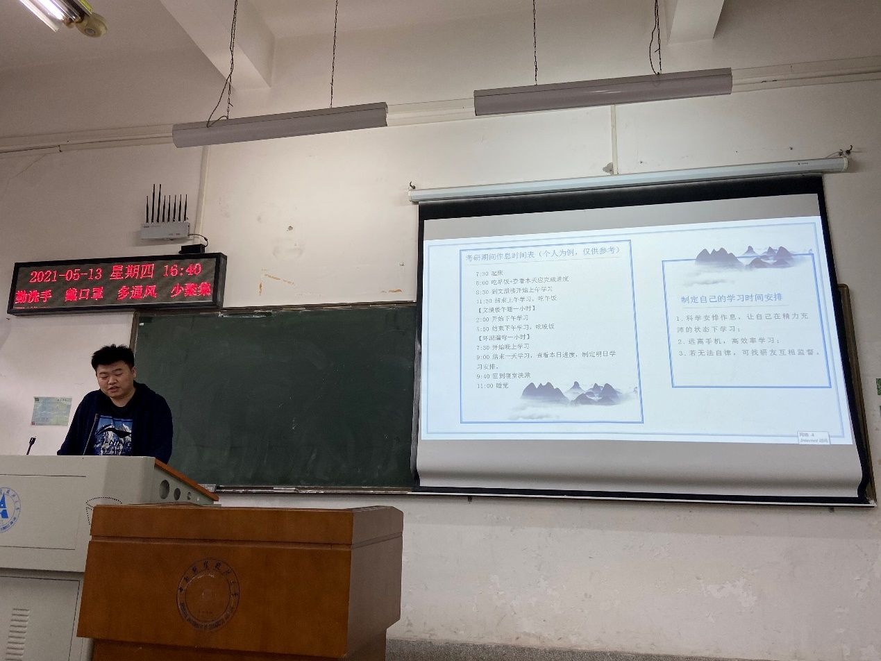 第三位分享的是考研本校会计专硕的周文渊师兄,他用“抉择、行动、信息、底牌”四个关键字概括了自己的考研之路,他首先解析了学硕和专硕的区别,让大家对考研选择有更清晰的认知,其次分享了自己的基础、强化、冲刺、复试几个阶段备考情况和备考日常作息,第三他强调考研是场信息战,信息获取能力至关重要,最后他分享自己如何兼顾考研、就业,拿到兜底offer的底牌,鼓励同学们早做规划,做到“手里有粮食,心理不慌”。