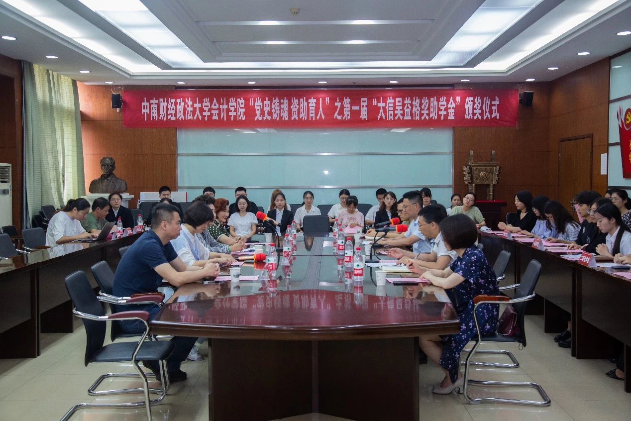 2021年6月25日,米兰电竞·(中国区)会计学院“党史铸魂 资助育人”之第一届“大信吴益格奖助学金”颁奖仪式在文泉南401会议室顺利举行。大信会计师事务所管委会主席、执行事务合伙人、基金会荣誉理事长吴卫星,大信会计师事务所高级合伙人、大信吴益格公益慈善基金会荣誉理事马娟,大信会计师事务所合伙人徐敏,大信吴益格公益慈善基金会办公室主任郑文莅临会议,我校校友工作与社会合作部副部长、教育发展基金会副秘书长万莉,会计学院副院长王昌锐,会计学院党委副书记兼行政副院长、纪委书记徐会超,校友工作与社会合作部基金工作办公室主任刘诲,会计学院党政办公室主任胡桂锬等教职工,楚天都市报、长江日报等媒体,以及全体获奖学生参加了会议。会议由徐会超主持。