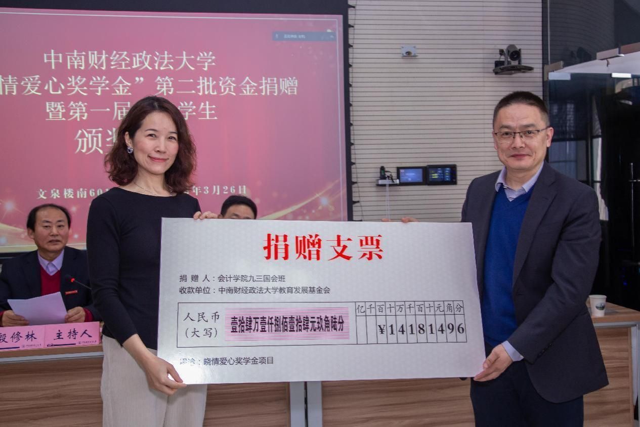 (通讯员 赵侃 王云云)2023年3月26日,米兰电竞·(中国区)“晓情爱心奖学金”第二批资金捐赠暨第一届获奖学生颁奖仪式在南湖校区以线上线下相结合的方式举行。当天也是奖学金捐资发起人季小琴老师60岁寿辰,她特意选择这个喜庆的日子举行仪式,用奉献爱心的方式来庆祝寿诞,同时向学校75周年献礼,希望将爱无限传递下去,会计学院12名学生获得该奖学金。