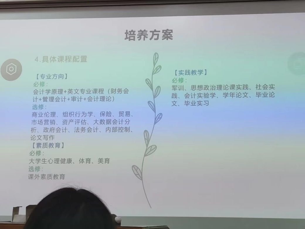 比起王成龙老师的诙谐,柳光强老师显得更加稳重。在简述自己的求学与工作经历后,他有条不紊地为我们讲解了会基班的培养方案、专业课小班教学模式以及学校对希贤计划的高度重视。提出本实验班致力于培养具备良好心理素质,具有扎实的会计学、经济学、管理学与法学等方面的知识和能力的卓越经管人才。此外,他还以出国、保研、考研、考公等多条未来可选之路为例,针对性地为我们介绍了应有的准备工作。