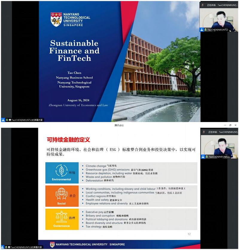 8月16日,新加坡南洋理工大学南洋商学院陈涛副教授压轴登场,以题为《可持续金融与金融科技》的学术报告,为2024年“科教融合·会计学术研究”暑期学校圆满收官。学硕导师组组长杨国超教授主持报告会,300余名硕博学生和青年教师参会。
