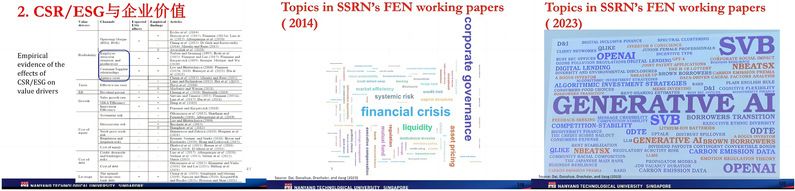 下午,陈涛教授转向“金融科技”问题,通过展示2014年至2023年顶刊上发表论文的话题统计图,指出生成式AI、机器学习已经替代了金融危机、公司治理等成为当下研究的热门话题。随后,他以自己在相关领域发表的论文为例,详细阐述了如何开展此类话题研究。