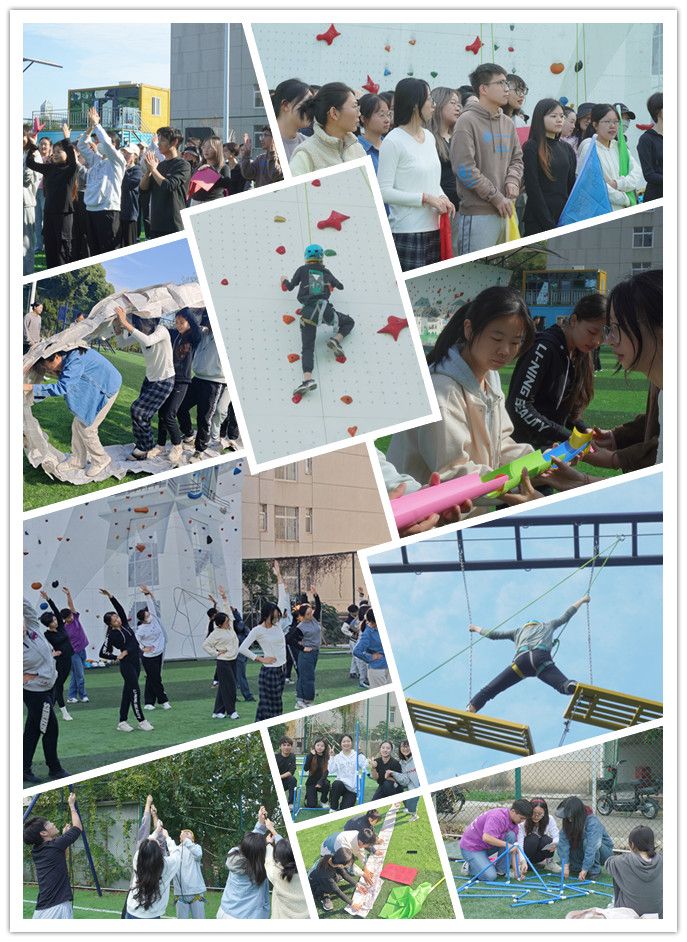 在专业教练的指导下,一系列富有创意和挑战性的运动拓展项目逐一开展,同学们凭借坚韧不拔的意志,一次次挑战自我极限,齐心协力,默契配合,通过团队合作实现个人与集体的共同成长。