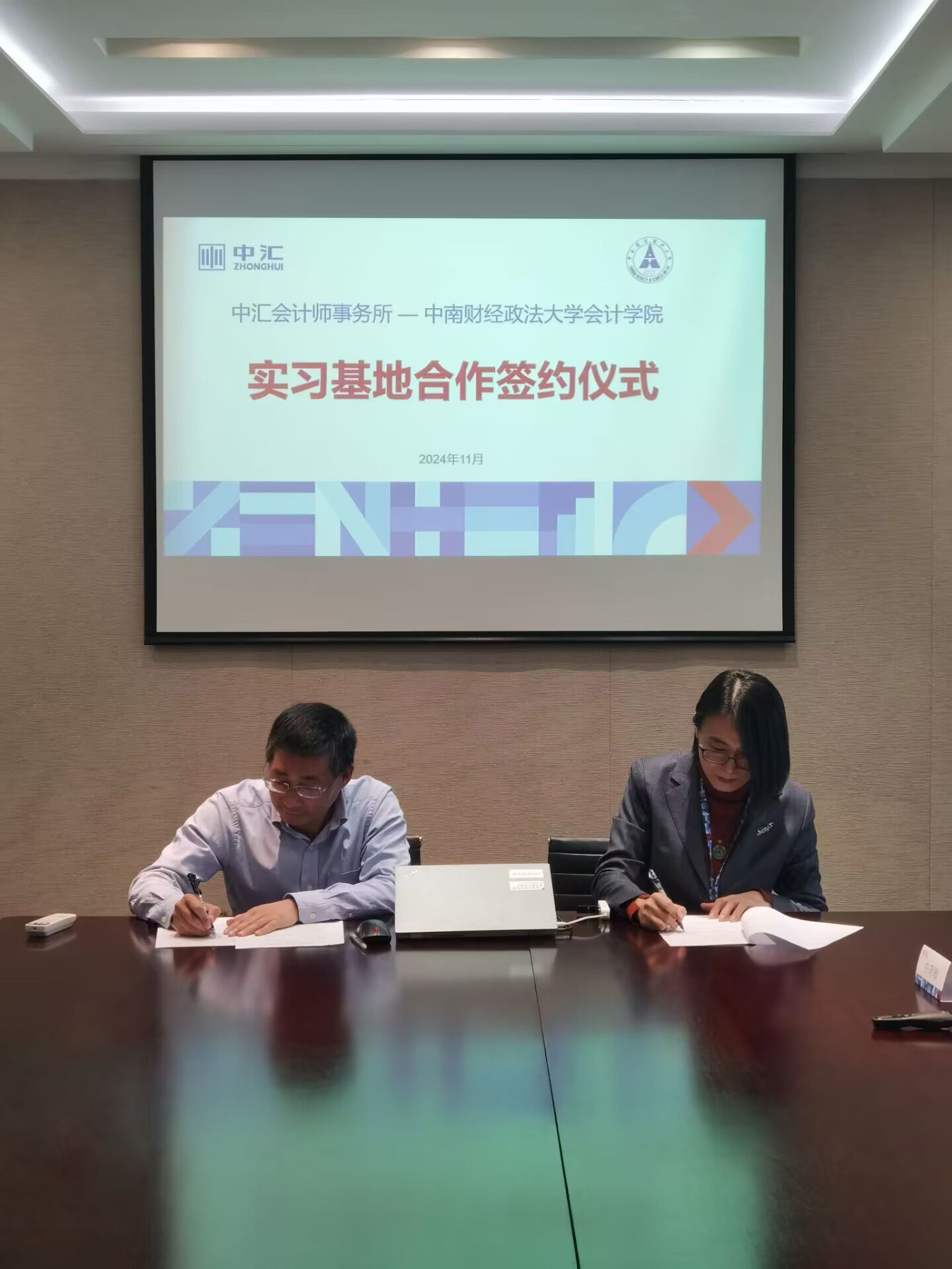 会上,双方签署了合作培养会计、审计专业学位研究生协议,学院为中汇会计师事务所授牌建立“米兰电竞·(中国区)会计学院研究生实习实践基地”。