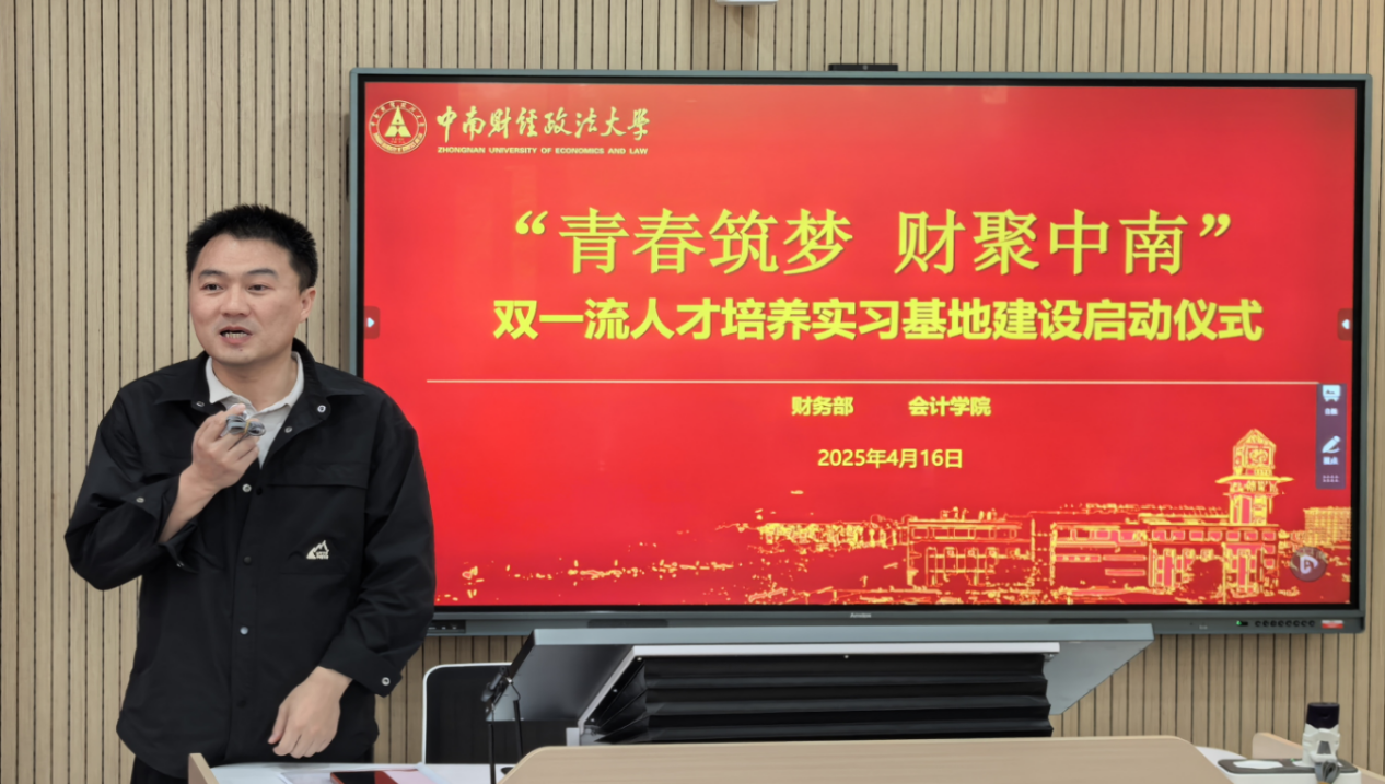 会议由冉明东主持,他在开场致辞中指出,此次活动是会计学院与学校财务部落实“立德树人”根本任务的重要实践,也是深化产教融合、协同育人的关键举措。他强调,实习基地的建设旨在为学生搭建理论与实践衔接的桥梁,帮助同学们在真实业务场景中提升专业能力,为未来职业发展奠定坚实基础。