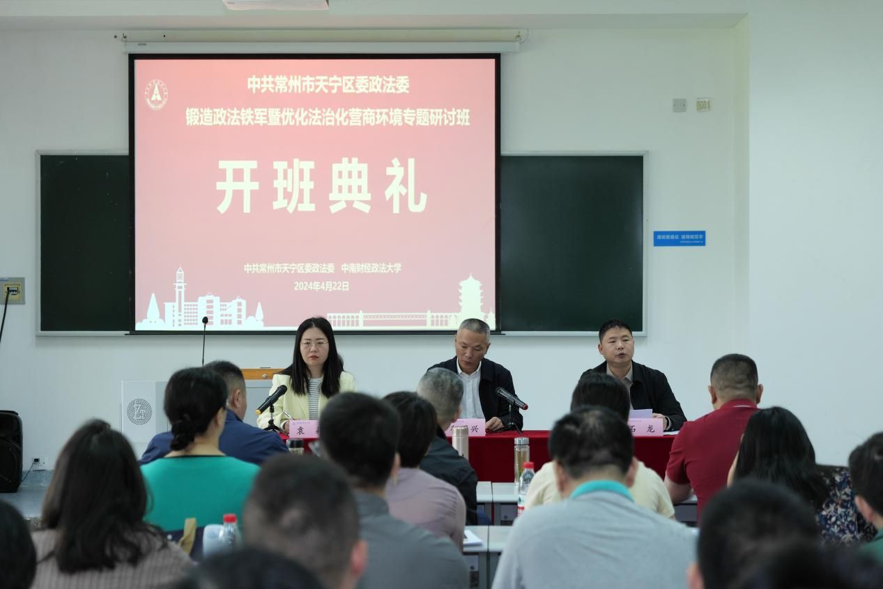 2024年4月22日上午,由中共常州市天宁区委政法委主办,我校承办的中共常州市天宁区委政法委锻造政法铁军暨优化法治化营商环境专题研讨班在首义校区顺利开班,共有40名学员及工作人员参加此次培训。中共常州市天宁区委政法委常务副书记郁国兴,学校继续教育学院副院长石龙出席了开班典礼。