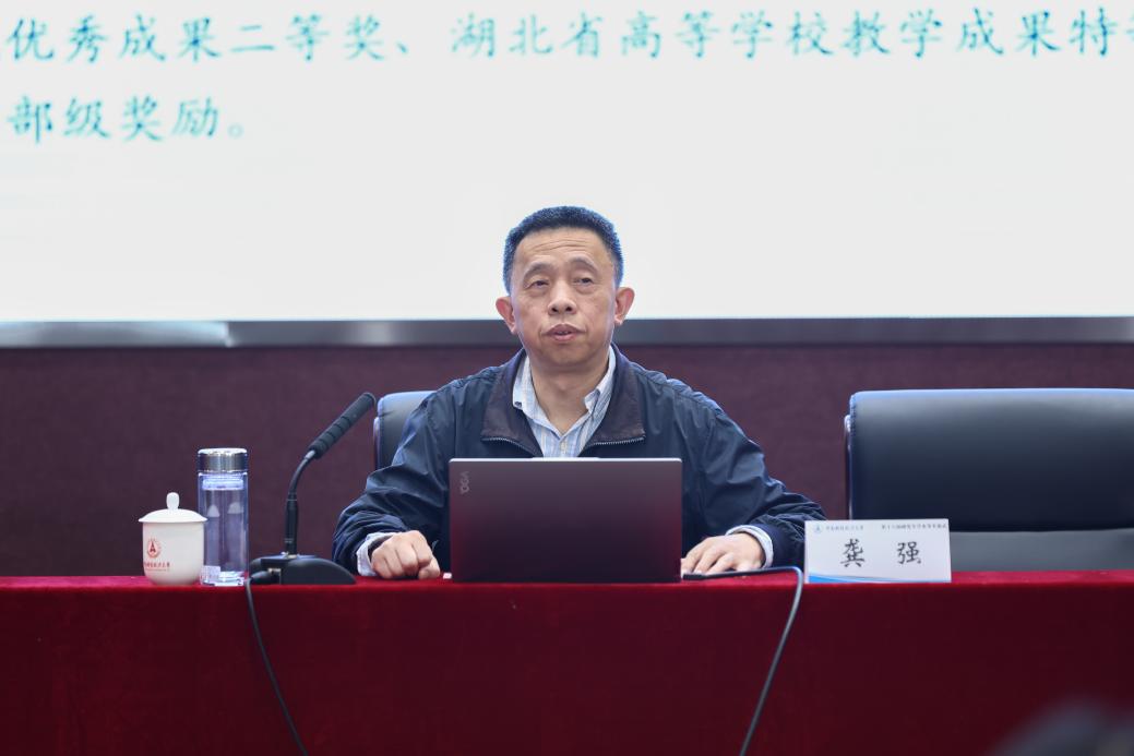 覃红宣读《关于表彰2025年研究生科研与实践奖励评审结果的决定》。