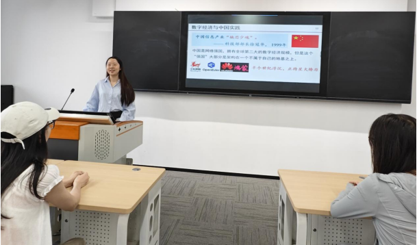 (通讯员 郭奕旻)5月12日,计算机科学与技术系郭奕旻老师在《数字经济与中国实践》授课过程中深入挖掘思政教育元素,系统融入习近平新时代中国特色社会主义思想与党的二十届三中全会精神内核,以具体案例深入探讨坚定践行中国特色社会主义发展道路,着力推动社会主义文化繁荣发展,以及实现中华民族伟大复兴的中国梦,引导学生理解信息技术在中国经济、社会发展中所起的重要作用,帮助学生理解中国信息产业关键技术和应用,拓宽知识面和视野,培养家国情怀,激发使命担当。