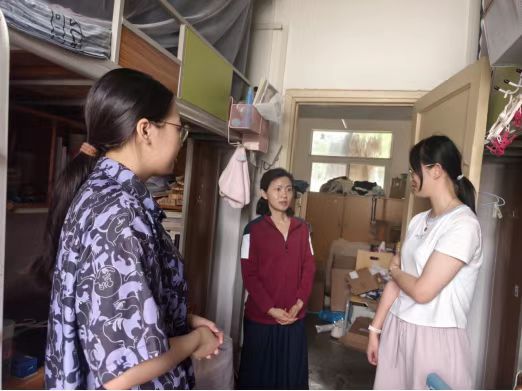 6月24日,学院党委副书记徐江带领学工团队走访毕业生宿舍,送上关怀与祝福。老师们与毕业生亲切交流,询问毕业去向及规划,了解行李打包寄送的情况,提醒同学们安全离校,鼓励大家在新阶段继续奋斗。毕业生们表达了对母校、师友的深厚感情与感激,祝福学院和学校的明天更美好。此次走访体现了学院领导老师对同学们的关心关爱,为毕业生大学生活画上温馨句号。
