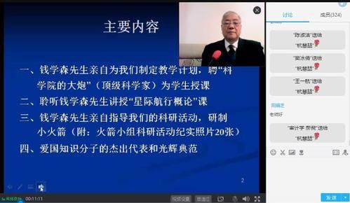 在2个多小时的直播中,张瑜教授从钱学森先生亲自为我们制定教学计划,聘“科学院的大炮”(顶级科学家)为学生授课;聆听钱学森先生讲授“星际航行概论”课;钱学森先生亲自指导我们的科研活动,研制小火箭;爱国知识分子的杰出代表和光辉典范四个方面展开叙述,通过一张张珍贵的老照片,回顾钱学森对教学的一丝不苟和对学生无微不至的关怀,以及中国科大力学系火箭小组组建初期克服重重困难研制小火箭的难忘历程,详细讲述钱学森斗智斗勇、毅然返回祖国的故事,再现作为爱国知识分子杰出代表的钱学森先生伟大而光辉的一生。
