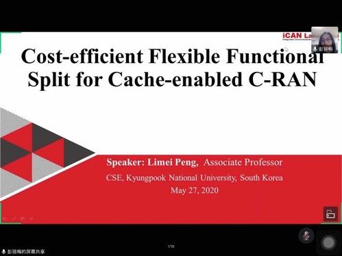 本次我们邀请到的主讲人是庆北国立大学的彭丽梅副教授,主持人是张引老师,主讲内容是可缓存毫米波C-RAN的动态功能切分方案研究。在传统C-RAN结构中,接入网功能可被划分为数个不同的功能模块,其中射频功能模块置于射频拉远头(Remote Radio Head, RRH)端,而基带处理功能模块集中置于基带单元(Baseband Unit, BBU)资源池,以简化RRH的功能降低其设备费用并对资源进行集中且高效的管理。但同时由于RRH与BBU间的前传带宽需求较大,导致传输资源与成本的浪费。为了解决这一问题,3GPP基于网络功能分割提出了多种静态或动态的网络切分方式。动态的功能切分策略允许C-RAN灵活选择合适的功能切分方式来服务不同需求的内容访问请求,以达到带宽需求与网络资源使用花费之间的平衡。