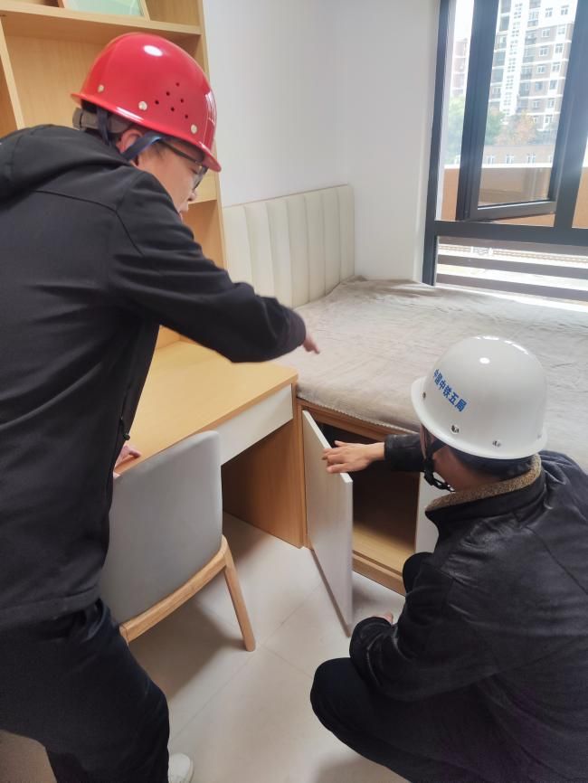在资产管理部及校园建设部工作人员引导下,师生代表依次参观了实体样板间,详细了解房间布局、装修材料、家具配置等情况。参观过程中,大家仔细查看每个细节,从采光通风到储物空间,纷纷结合自身居住需求提出看法。